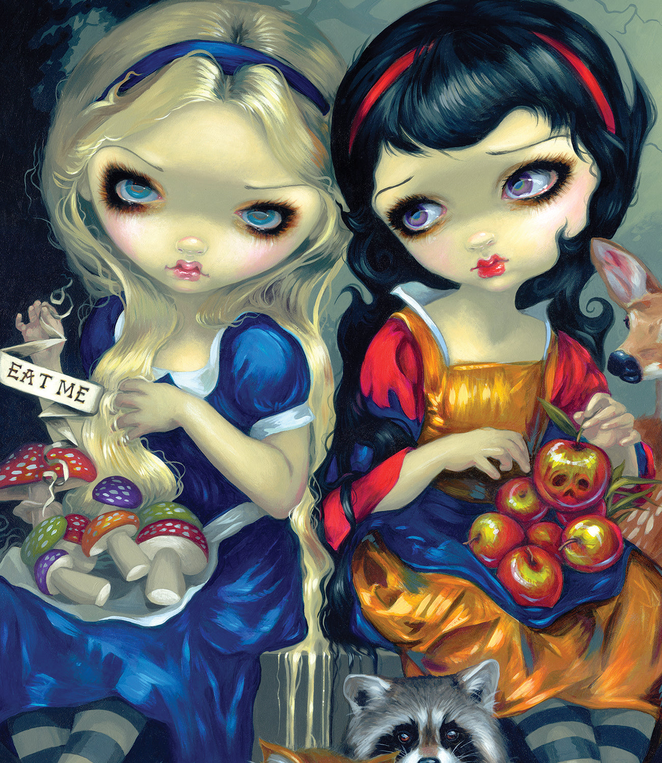 Jasmine Becket-Griffith is a traditional acrylic painter, combining elements of realism with fantasy and the surreal. Historical and spiritual references are intertwined with fairy tales and the beauty of nature. Her trademark liquid-eyed maidens evoke a wide range of emotions and responses to the surrounding imagery. It is her goal to bring a bit of magic and mystery to the mundane world with every painting!